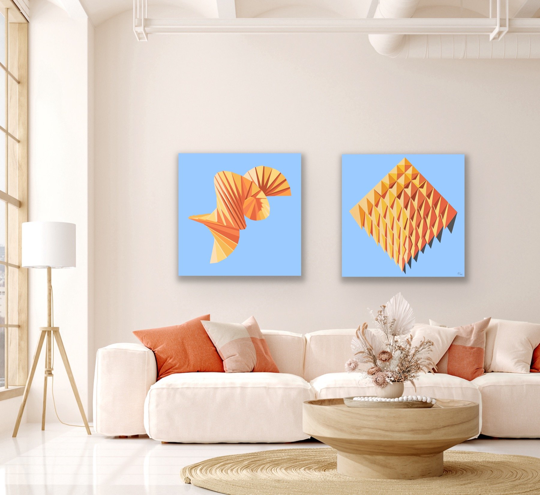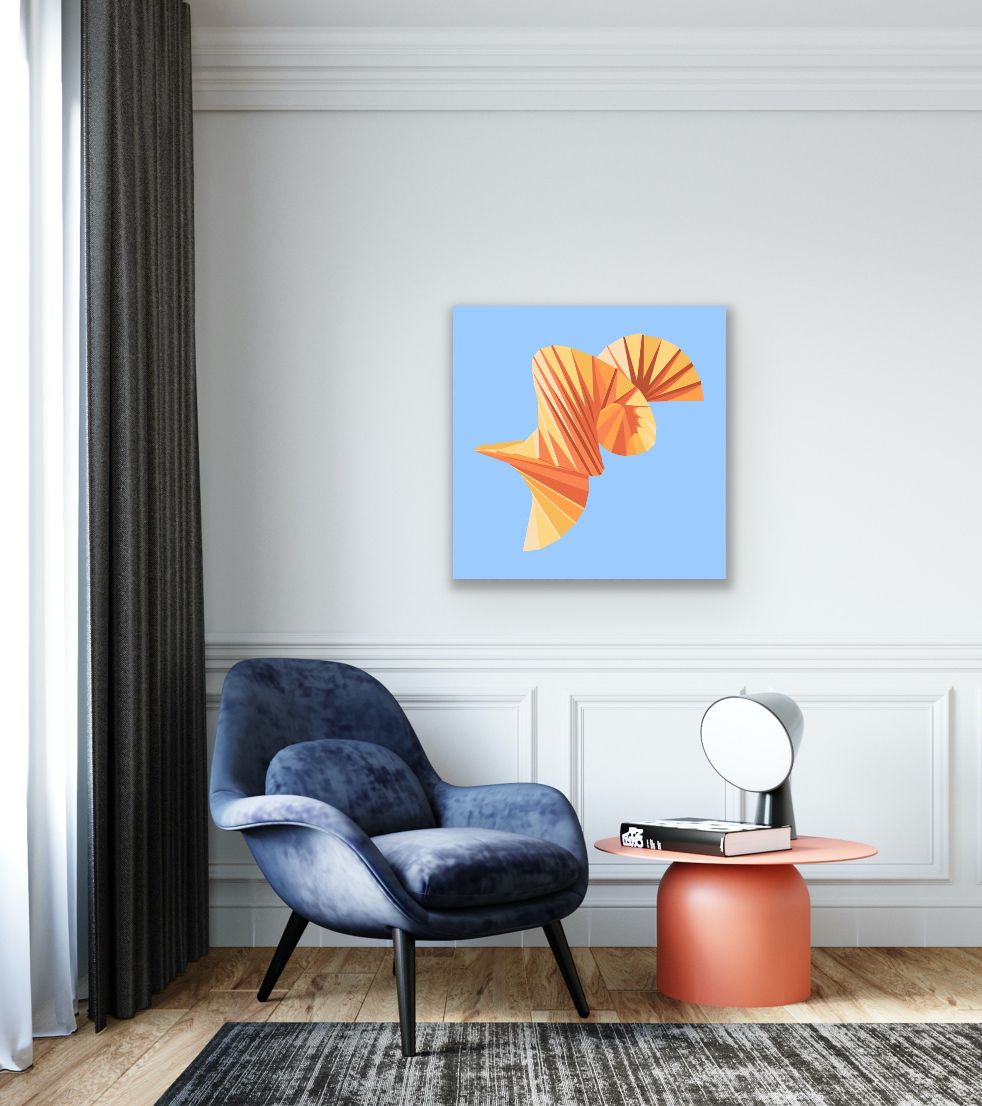 Like its predecessor, this painting traces a journey of growth and transformation, with a bold spiral that rises from the bottom left to the top right—an abstract metaphor for progress, elevation, and the cycles of life. The form is rendered as a folded origami structure, with delicate creases that catch light and create a tactile sense of motion and dimension.